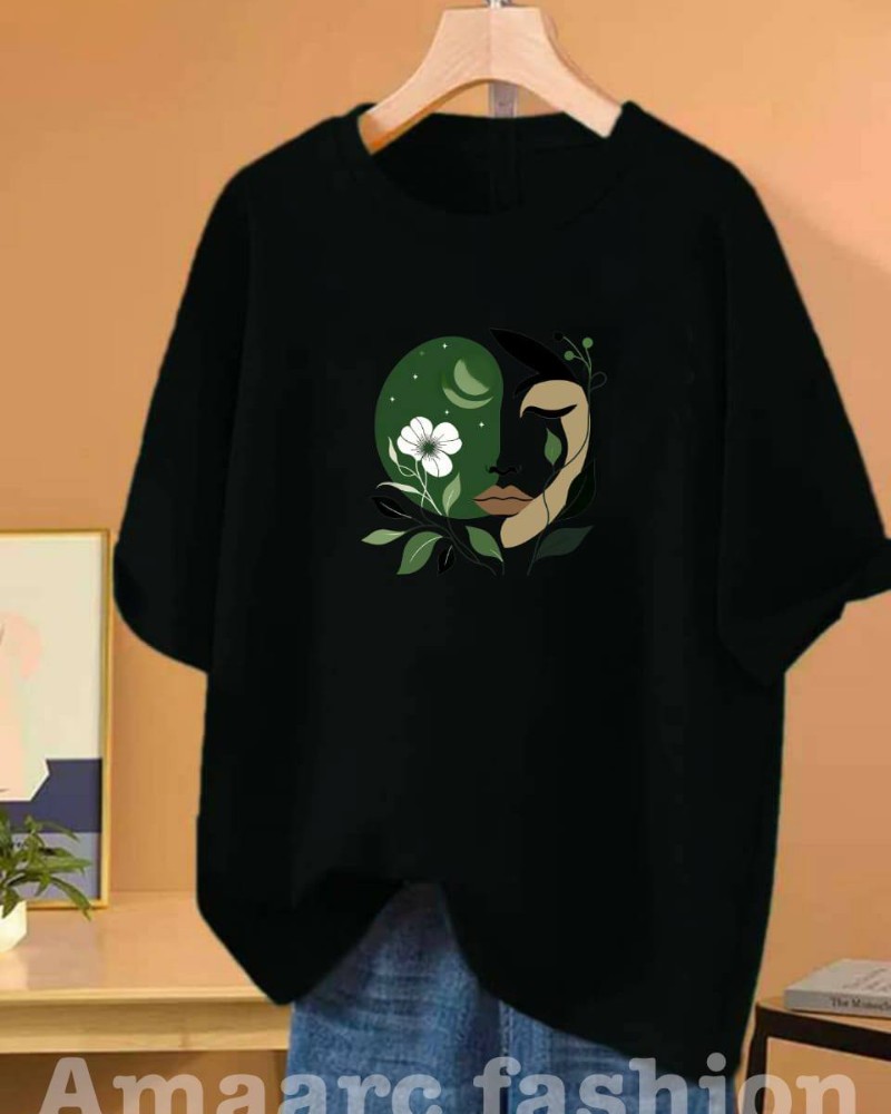 The Nature Harmony Oversized T-Shirt showcases a stunning artistic print of a serene face intertwined with leaves, a blooming flower, and a crescent moon. This design symbolizes a deep connection with nature and inner peace. Made from premium-quality fabric, this T-shirt offers a soft, breathable feel and a relaxed oversized fit, making it perfect for casual wear. Available in 12 colors, it’s a versatile addition to any wardrobe, ideal for those who appreciate artistic and nature-inspired fashion.