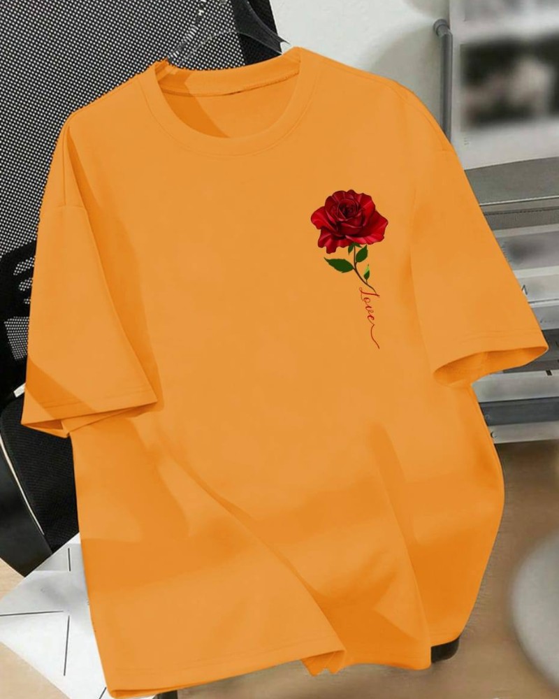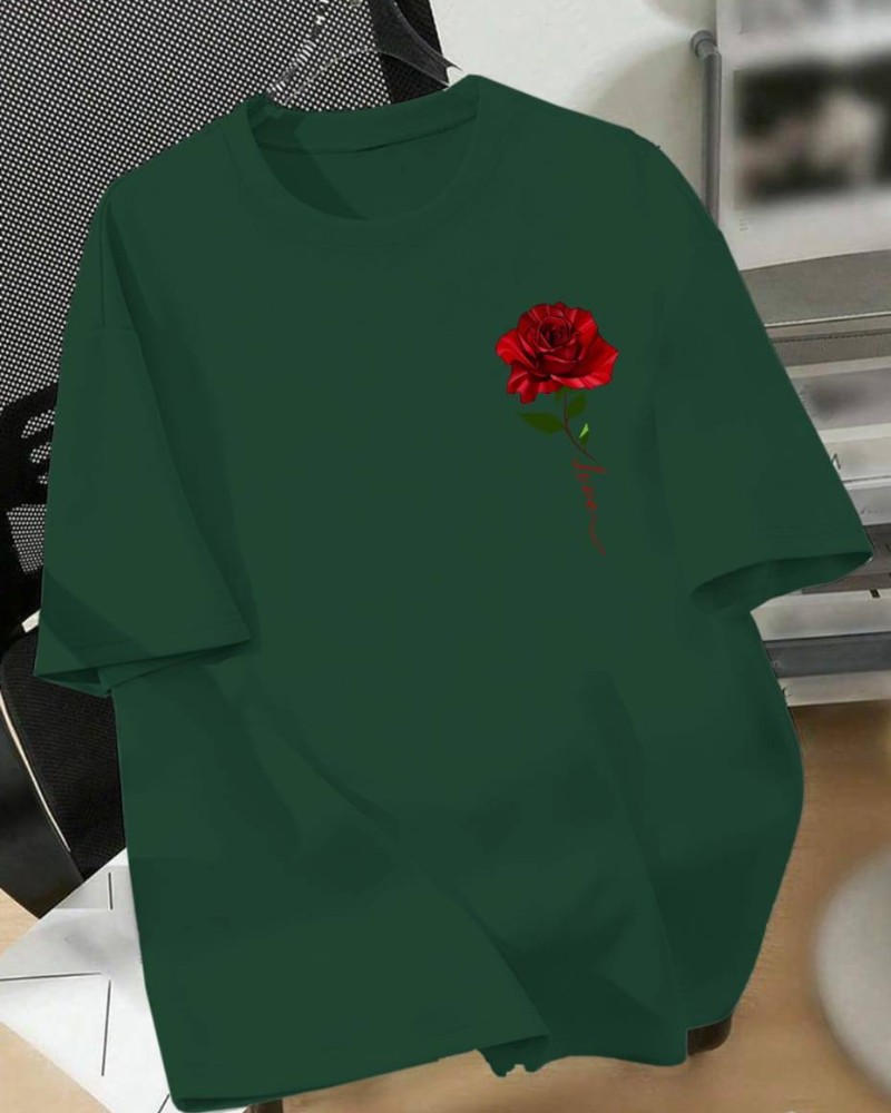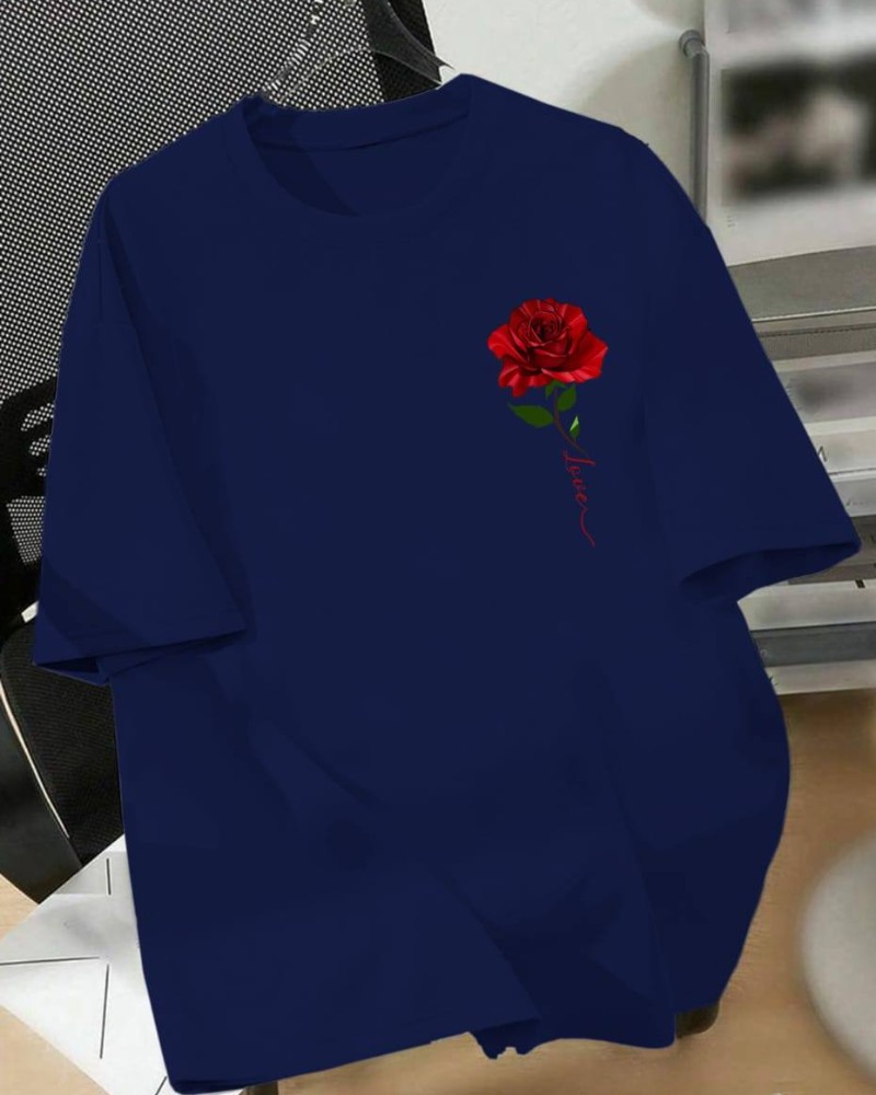 ✅ Elegant & Timeless Design – The subtle yet eye-catching rose print makes this tee suitable for casual outings, dates, or everyday wear.