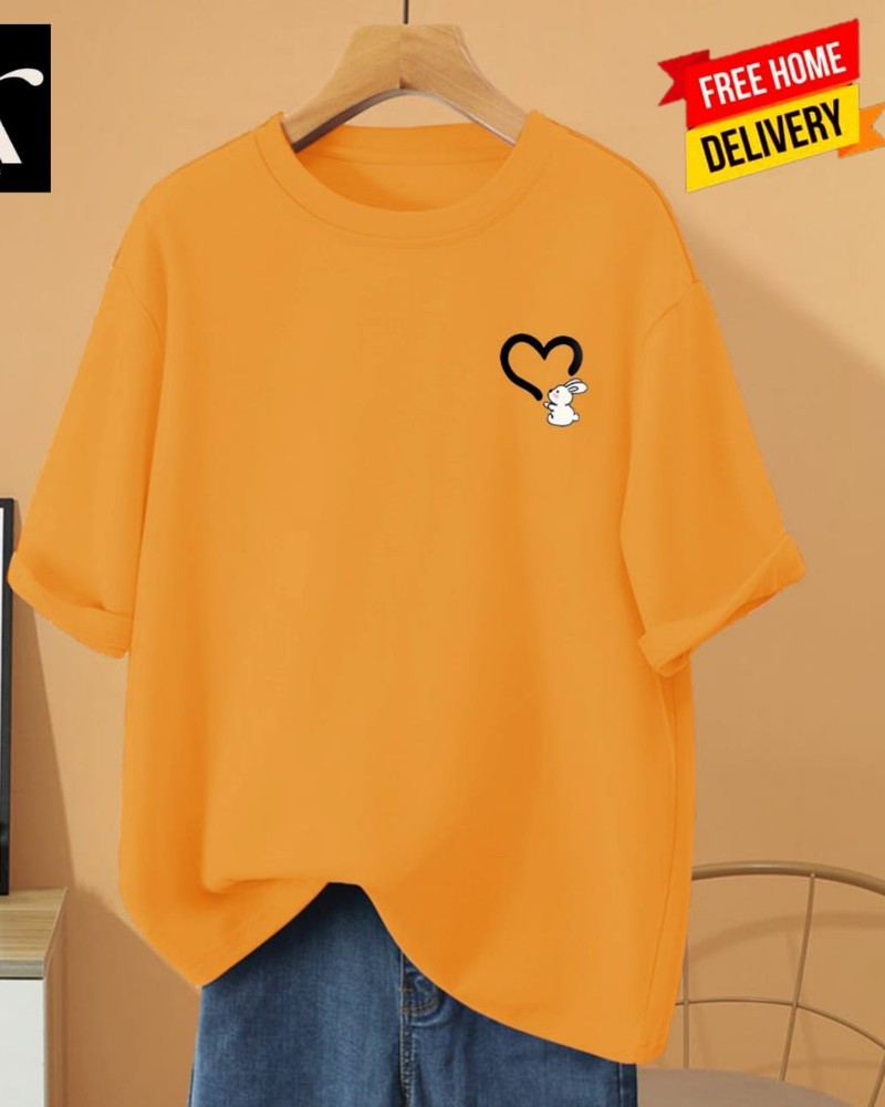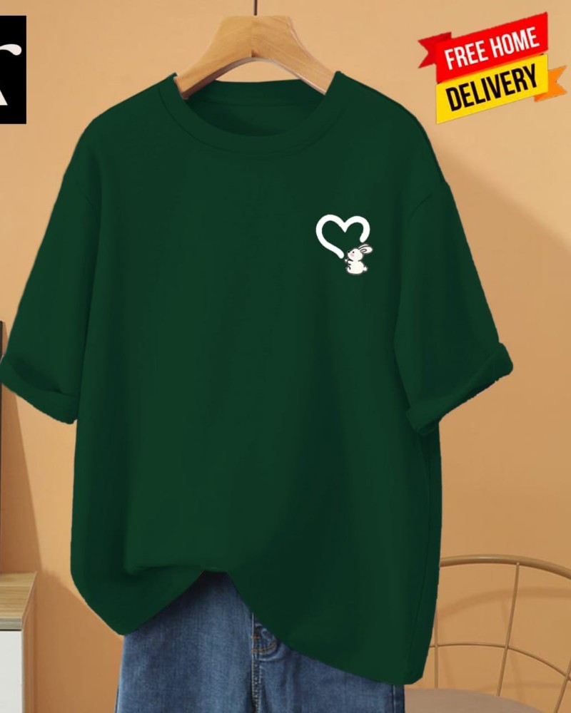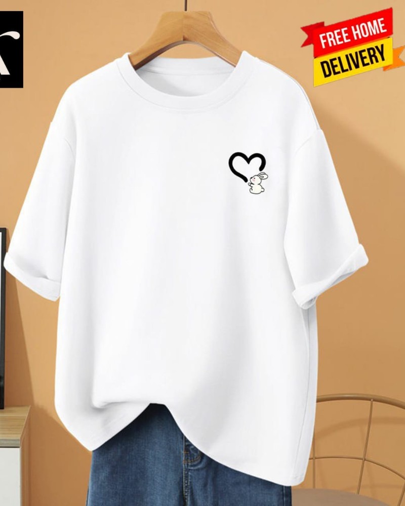 Made from a soft and breathable cotton blend, this oversized T-shirt is perfect for everyday wear. Its minimal yet trendy design adds a touch of charm, making it a great choice for casual outings, lounging, or pairing with jeans and shorts.